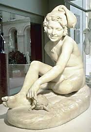See the difference in masters? Rude's fisher boy is real, you can expect to walk down the coast, or docks and see a little boy playing with a turtle. It's true to life, there is no idealized nature to it, its very relaxed and cool. Duret's piece, however, is the idea of the dance. You won't see a fisherman dancing like this, it's all about the idea. Not reality.